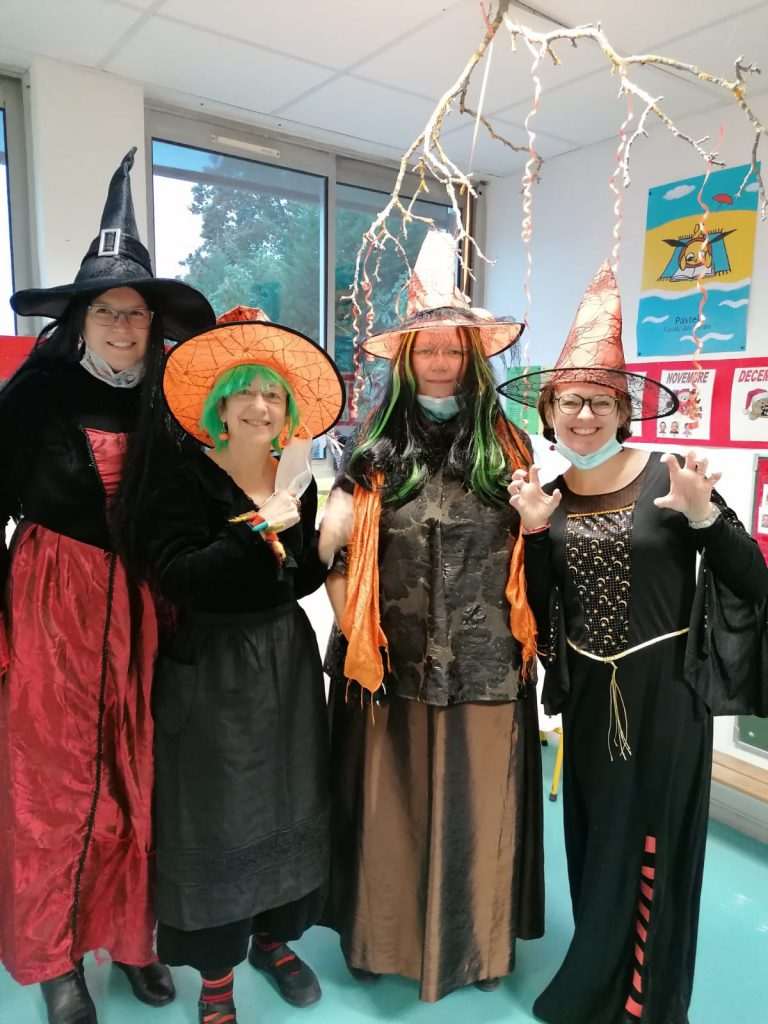 The youngest pupils went on a witch hunt and trick-or-treating in the forest.